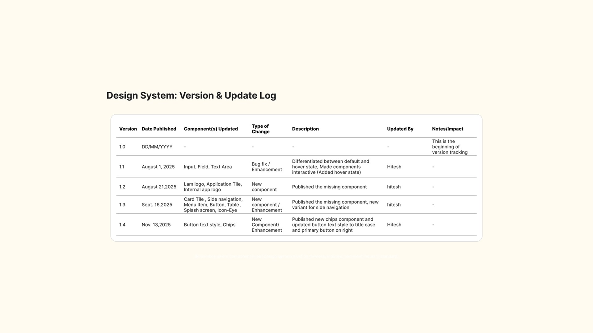 Because the system wasn’t published, every designer followed their own approach. Components looked slightly different across files, spacing rules were unclear, and developers often had to guess how something should behave. This created inconsistencies, slowed down delivery, and increased rework between design and engineering.